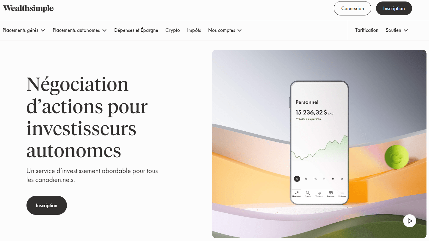 Wealthsimple placements autonomes est une application de courtage en ligne qui démocratise l’investissement au Canada. Contrairement aux courtiers traditionnels, elle permet d’acheter et de vendre des actions et des FNB sans commission. Accessible depuis une application mobile intuitive, Wealthsimple placements autonomes séduit autant les débutants que les investisseurs expérimentés. Grâce à sa simplicité d’utilisation et à ses faibles coûts, la plateforme est devenue une option incontournable pour investir de manière autonome et bâtir son patrimoine à votre rythme.